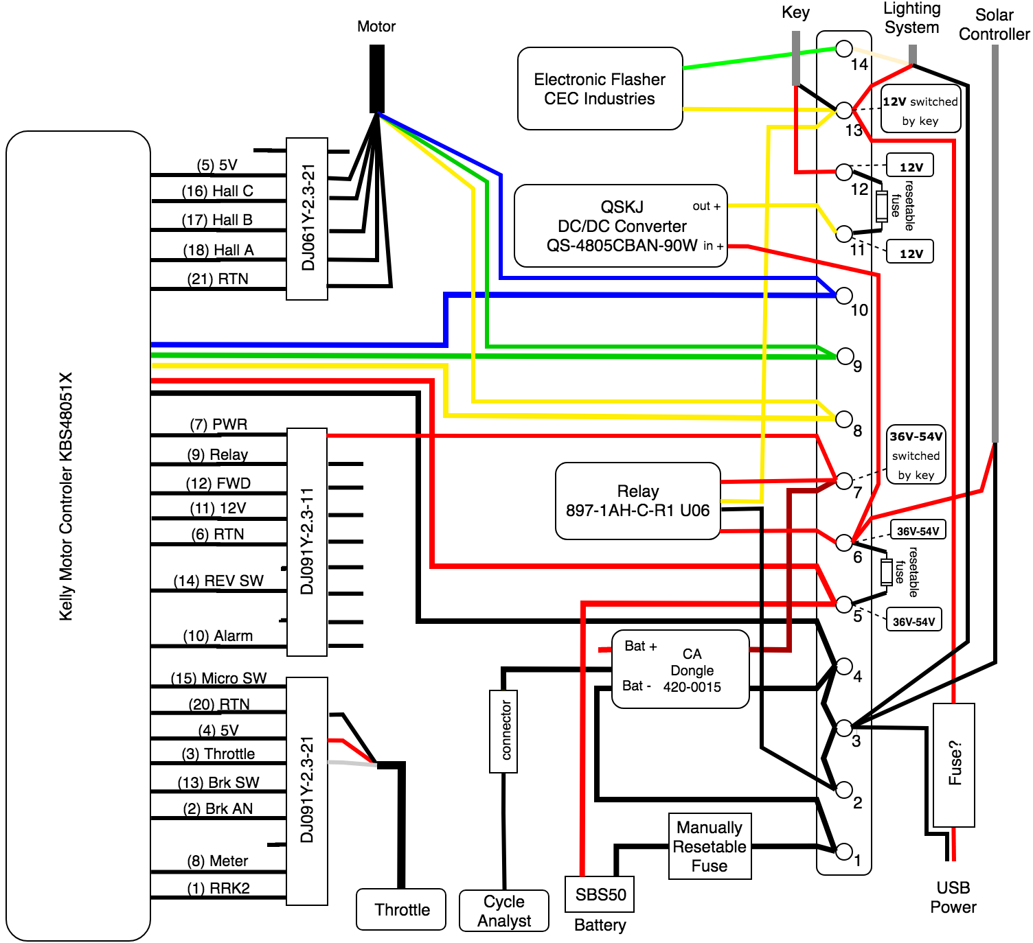 These components and wiring are mounted above the battery. Here is a picture of what it looks like outside of the Elf: